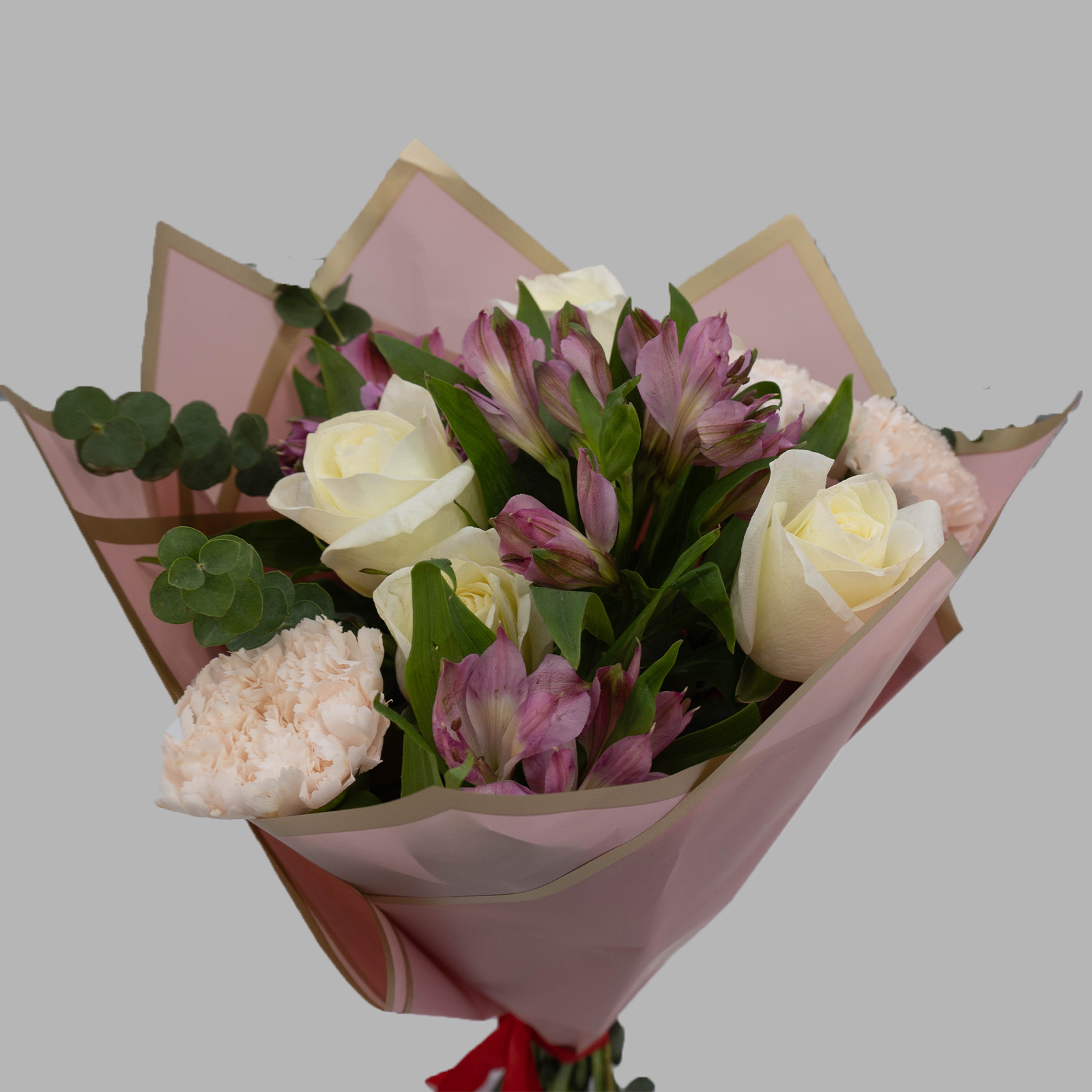 Soft light pink roses and warm peach carnations blend effortlessly with pure white alstroemeria and fresh eucalyptus leaves. This bouquet whispers sweetness and elegance, perfect for moments that call for gentle beauty and heartfelt warmth. Choose Blush Belle to share tenderness and grace with someone special.