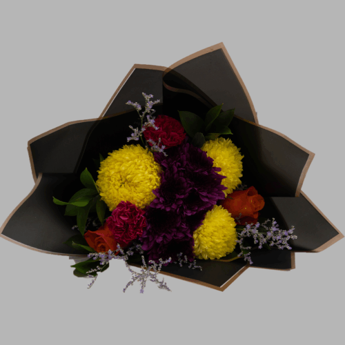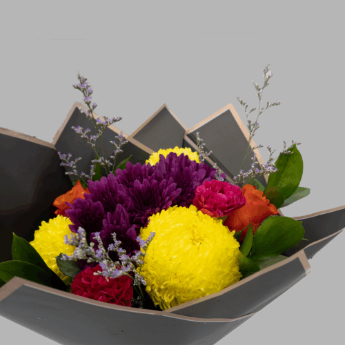 A warm and cheerful blend of soft Peach Carnations and Spray Roses, brightened by vibrant Orange Chrysanthemums and delicate Fern leaves. This charming bouquet is an ideal way to say thank you or celebrate birthdays and new beginnings for mothers and colleagues alike.
