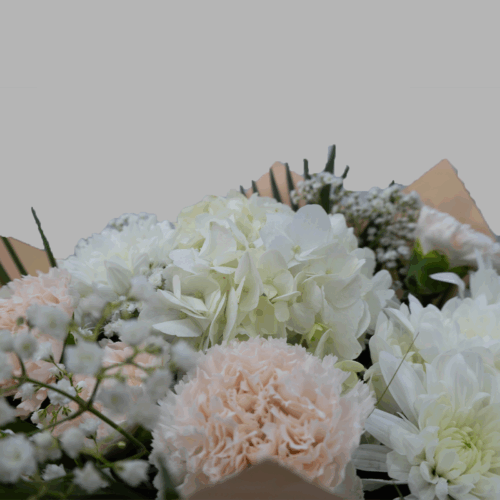 A tender mix of soft Pink Lisianthus and Peach Spray Roses, brightened by pure White Chrysanthemums and fresh Eucalyptus greenery. This graceful bouquet is a thoughtful choice to celebrate birthdays, express gratitude, or wish a speedy recovery for mothers, grandmothers, and friends.