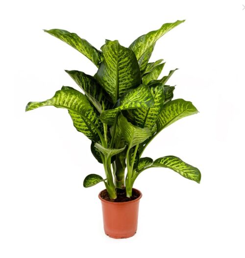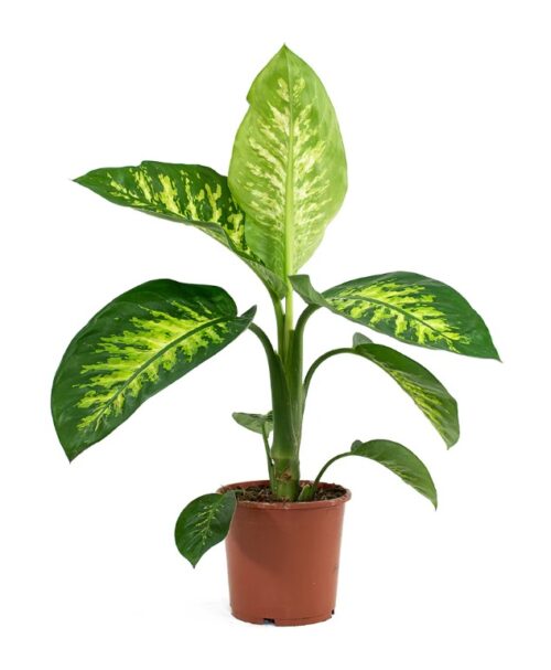 Spider Plant features arching green-and-white striped leaves with baby plantlets that dangle like little stars. It’s easy to grow in bright, indirect light and prefers lightly moist soil. Pet-safe and air-purifying, it’s perfect for hanging baskets or small pots. Typically available in small to medium sizes.